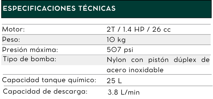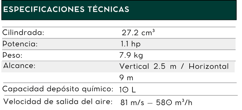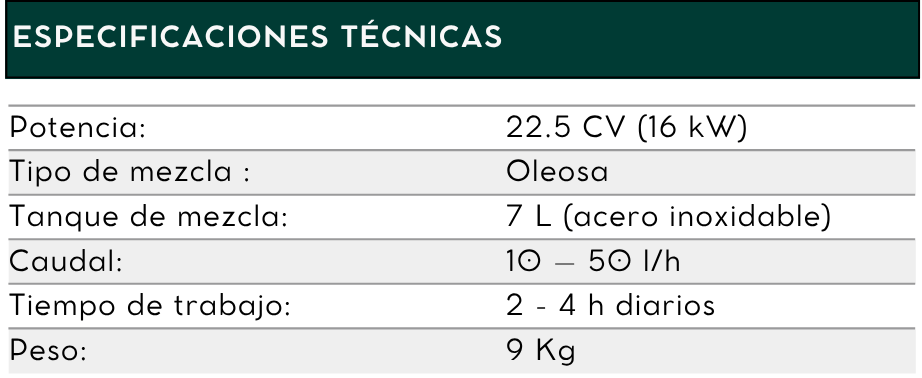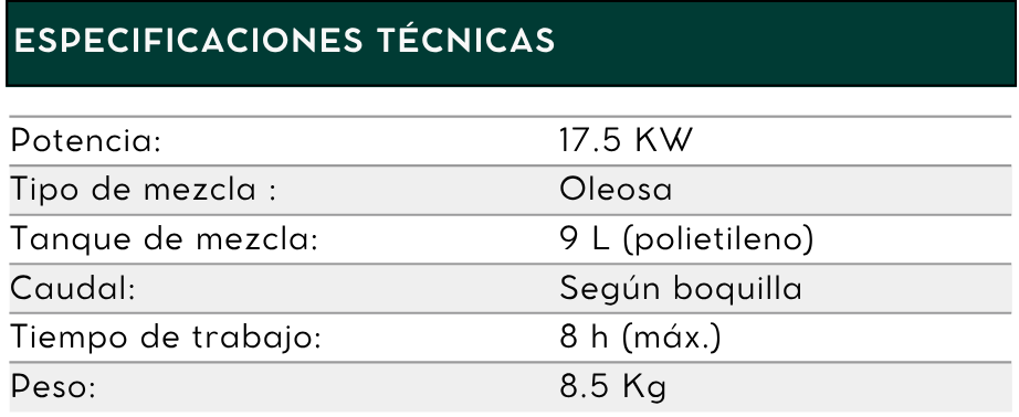 Es la solución ideal para técnicos, brigadas y operarios que necesitan potencia constante, bajo mantenimiento y máxima cobertura sin intervención manual directa.